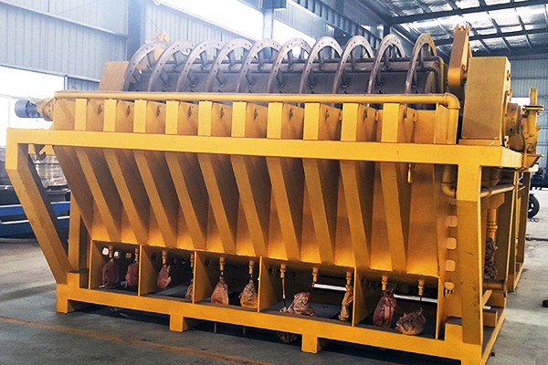 陶瓷過濾機是礦山特別是選礦廠采用浮選或磁選技術常用的一種高效節(jié)能的過濾設備。陶瓷過濾機分為吸漿區(qū)、干燥區(qū)、卸料區(qū)和反沖洗區(qū)。當陶瓷過濾機開始工作時,濾板浸入漿料槽中。在真空作用下,懸浮在漿槽中的精礦顆粒被吸附在濾板上,固體物料被截留在濾板上,濾液通過濾板。循環(huán)(多余部分也會排出);濾板離開漿槽進入干燥區(qū),濾餅在真空作用下繼續(xù)脫水;干燥卸料區(qū)裝有刮板,用于刮除濾餅;卸料完成,濾板進入反沖洗區(qū),過濾后的水通過分配頭進入濾板,反沖洗濾板以洗掉堵塞在微孔中的顆粒,完成一個過濾操作循環(huán)。
